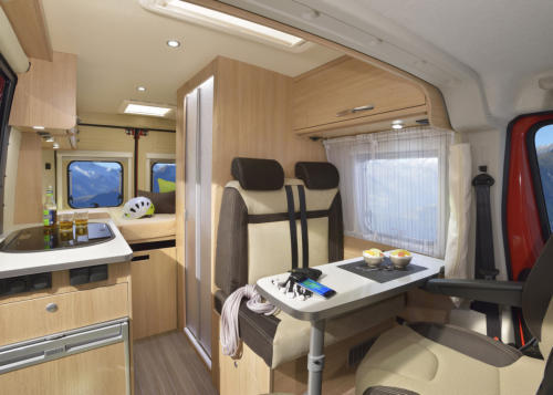 Tanto spazio in una misura compatta, per una guida confortevole come su un'autovettura, ma allestito notevolmente meglio. In questo modo, la cucina ed il salotto sono sempre con voi!